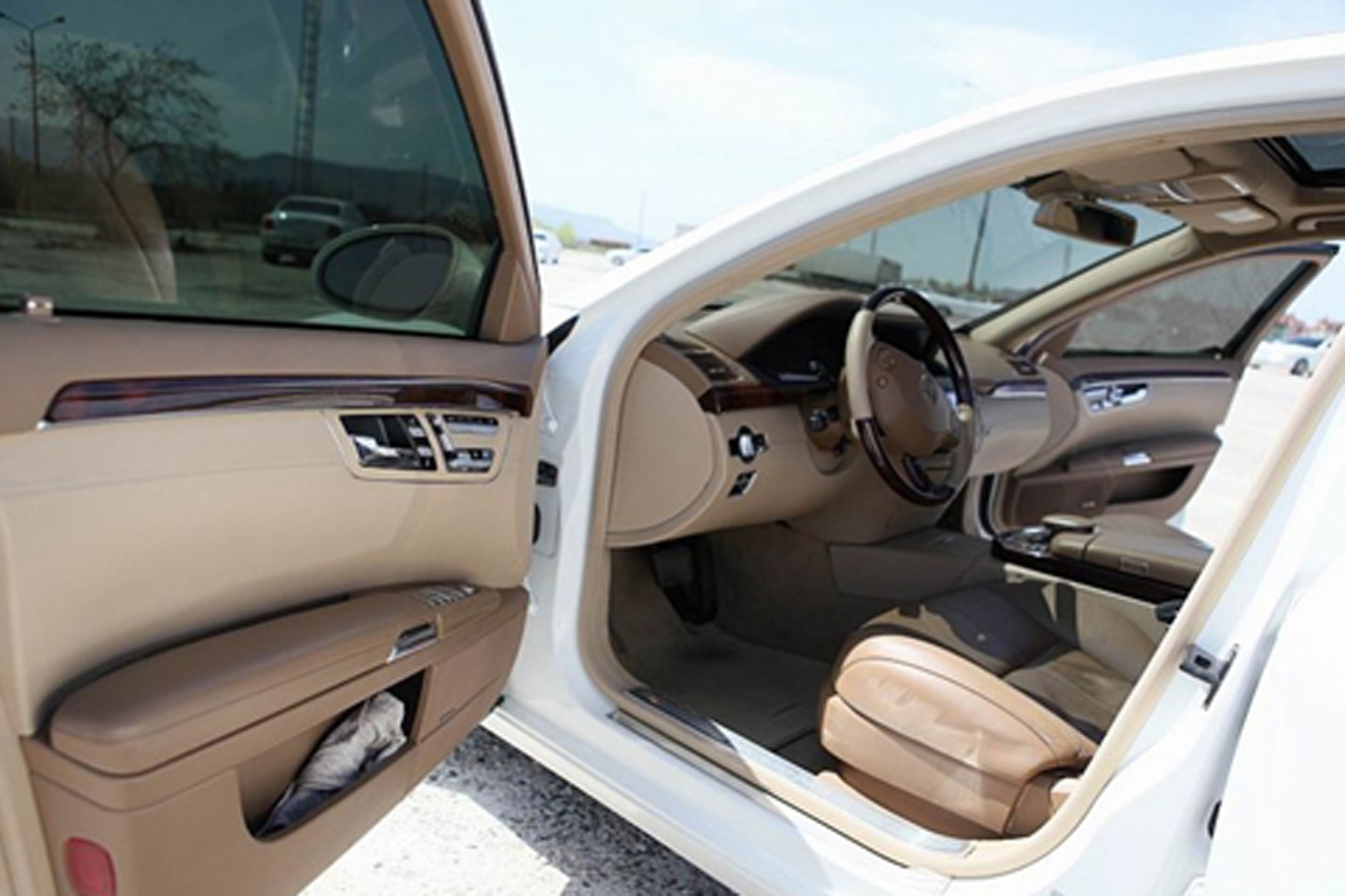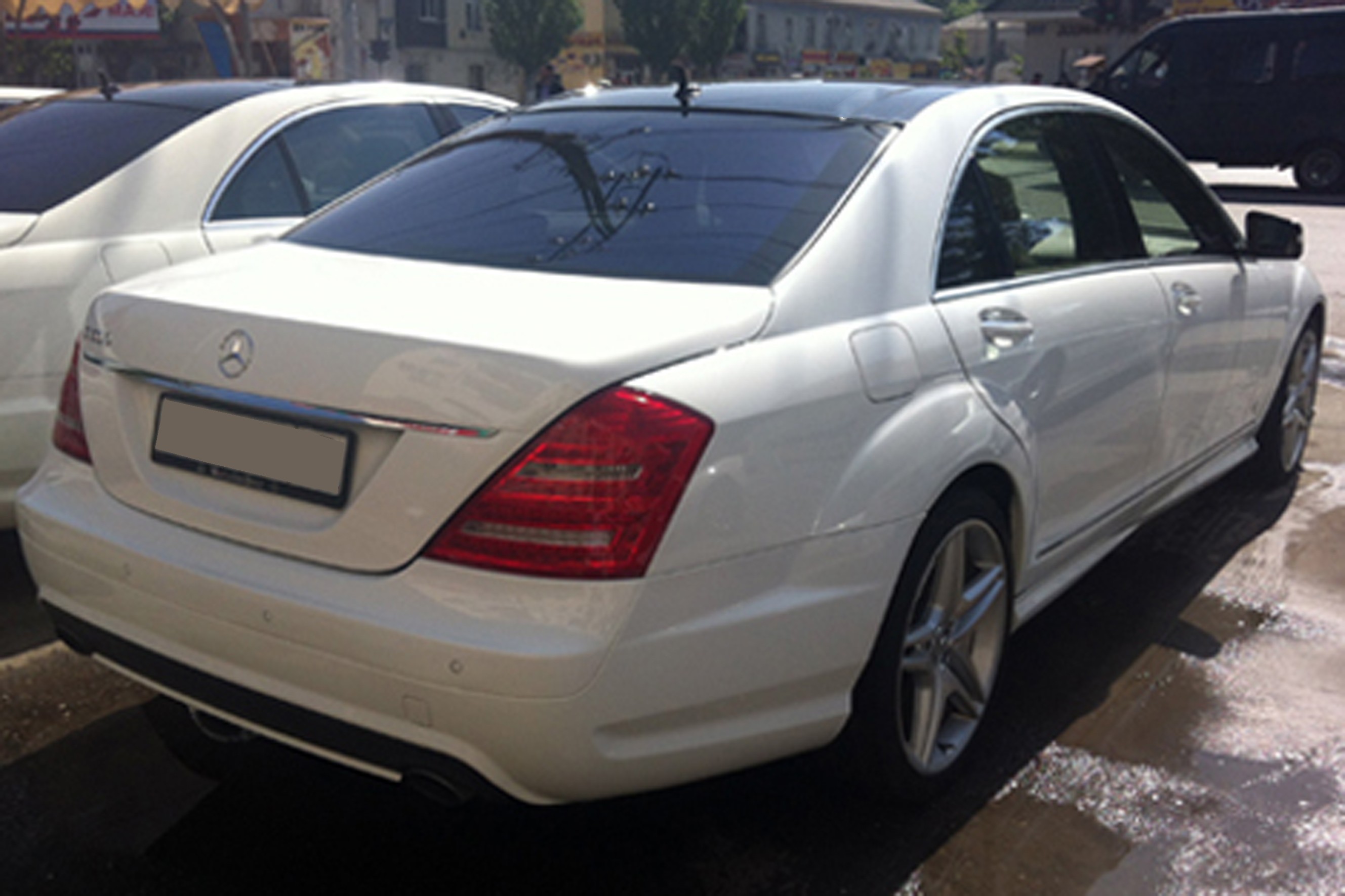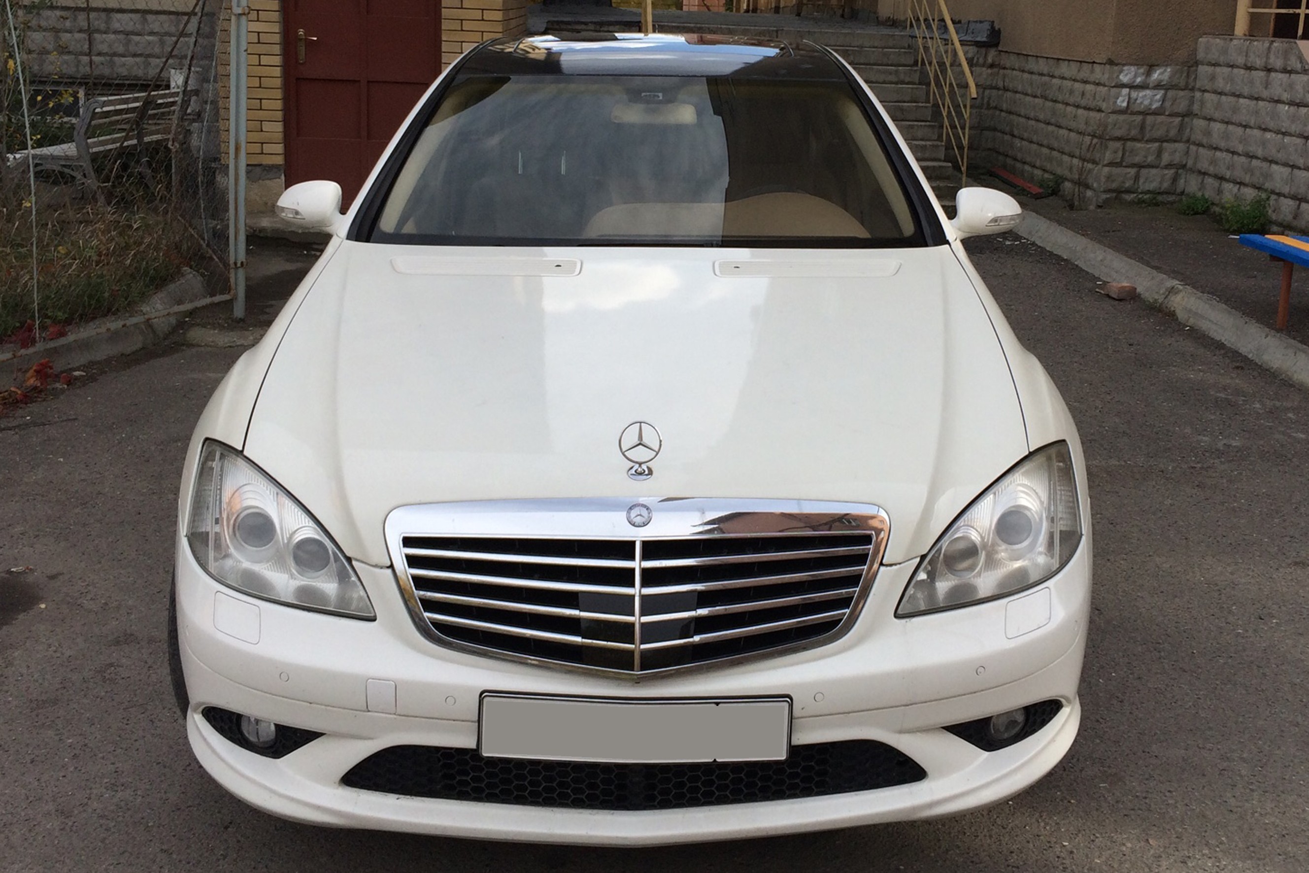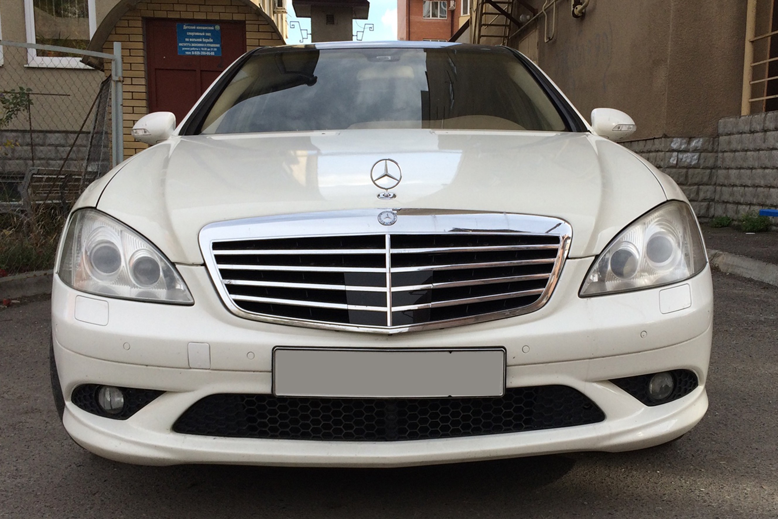 Прокат автомобиля представительского класса Mercedes S 500 белого цвета с водителем в Шумске